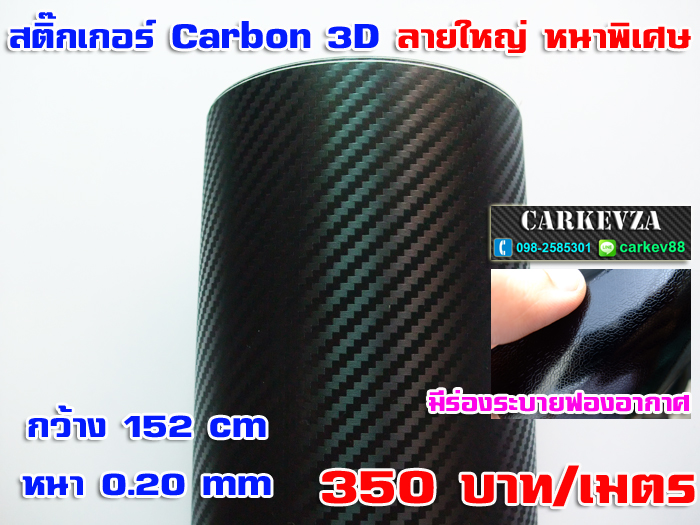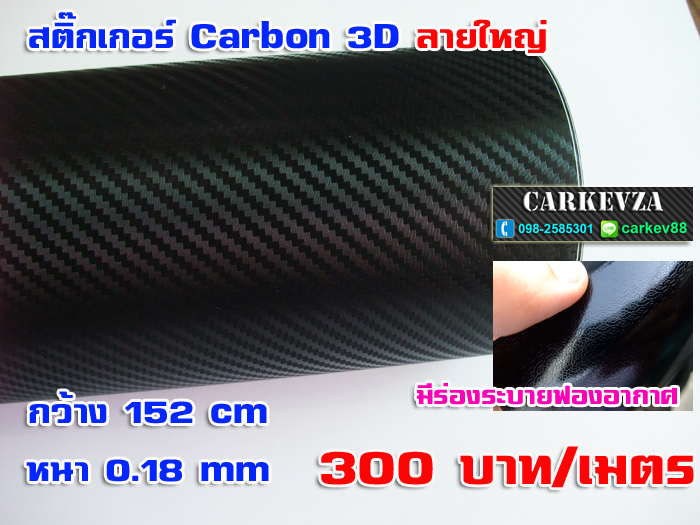 สติ๊กเกอร์ 3D carbon fiber vinyl ของ เราเป็นสินค้าที่มีคุณภาพสูง พื้นผิวแบบ 3D จะมีมุมมองของแสงเหมือนกันกับพาร์ทที่เป็น carbonจริงๆ ,ซึ่งเราสามารถติดตั้งง่ายๆได้ด้วยตนเองกับชิ้นงานต่างๆที่เราต้องการได้ อย่างสวยงามไม่ใช่แค่รถยนต์เท่านั้น สติ๊กเกอร์ 3D carbon fiber vinyl มีคุณสมบัติกันน้ำและแสง UV ทำให้เป็นที่นิยมในการใช้ตกแต่งภายนอกรถยนต์ เช่น hood,spoiler หรือ ติดทั้งคัน