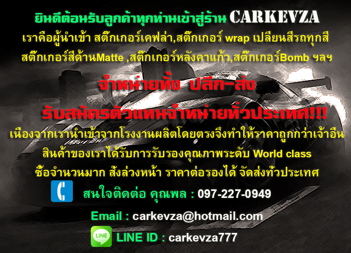 *** สินค้า สติ๊กเกอร์เคฟล่า,สติ๊กเกอร์สีด้าน(Matte) และ สติ๊กเกอร์หลังคาเงาพิเศษ(Super glossy) คุณภาพสูงที่ใช้กันอย่างแพร่หลายในวงการประดับยนต์ทั่วโลก เพื่อความสวยงามโดดเด่น และปกป้องสีรถที่คุณรักอย่างมีประสิทธิภาพ จากแสง UV ความร้อนและรอยขีดข่วน อีกทั้งการพัฒนาช่องระบายอากาศ(Air channels) ทำให้ใครๆก็สามารถติดตั้งด้วยตัวเองได้(D.I.Y)อย่างง่ายดาย